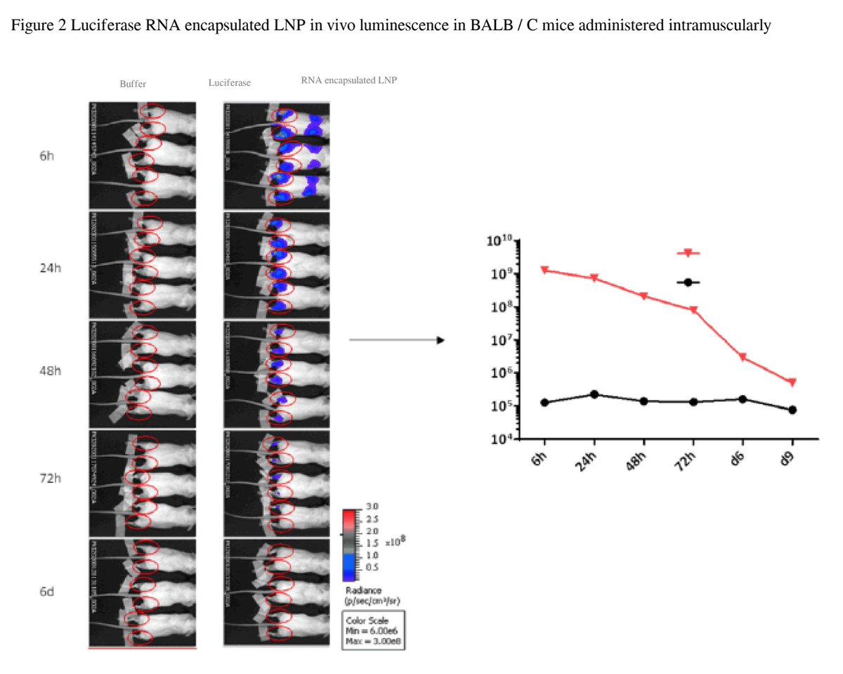 Page 19 implies that all modRNA-LnP8 was tested for bioluminescence at all time points, yet it seems everything but the 6h time point is redacted. So is the buffer control.
