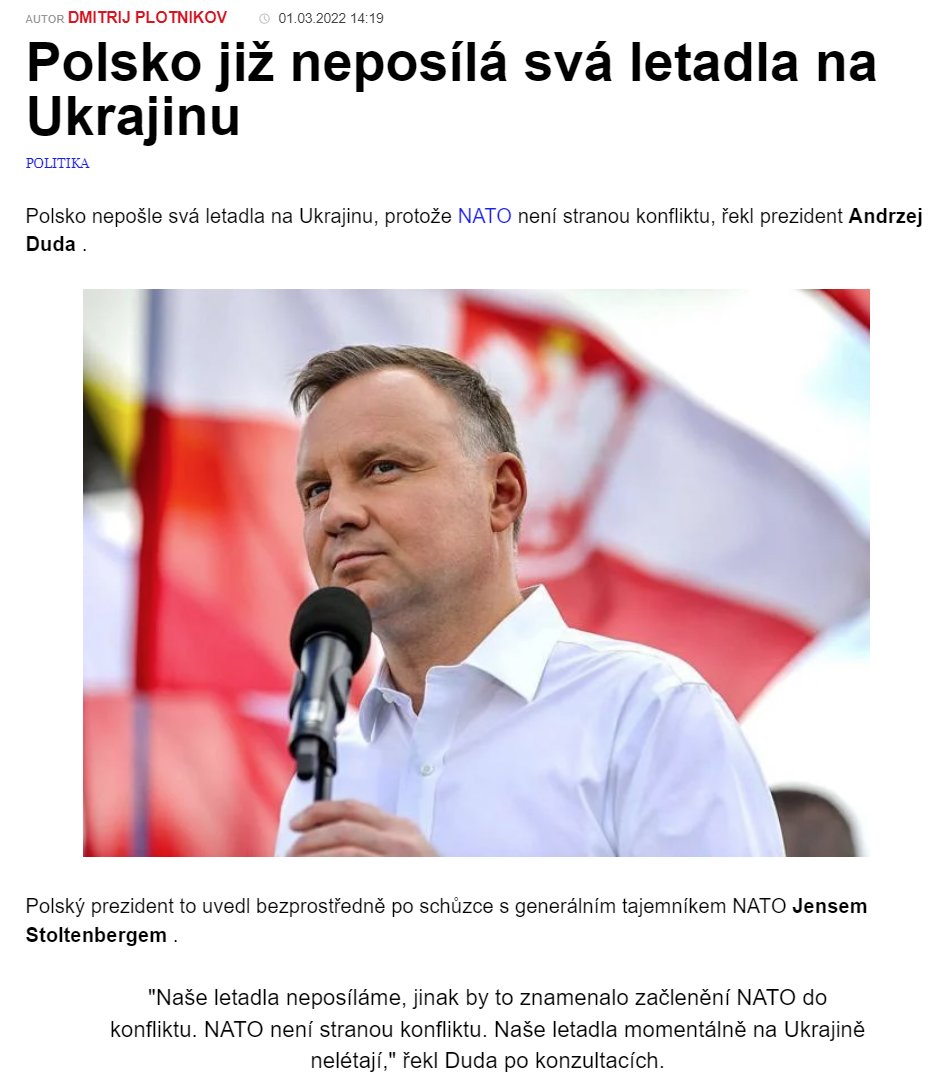 Hodně se zdůrazňuje, kdykoli nějaká země Ukrajině nedá něco, o co Ukrajina požádala. Zato když nějaká země něco dá, tak se to zde samozřejmě nedočtete. Ve čtenáři má zůstat dojem, že Ukrajině Západ nepomáhá.