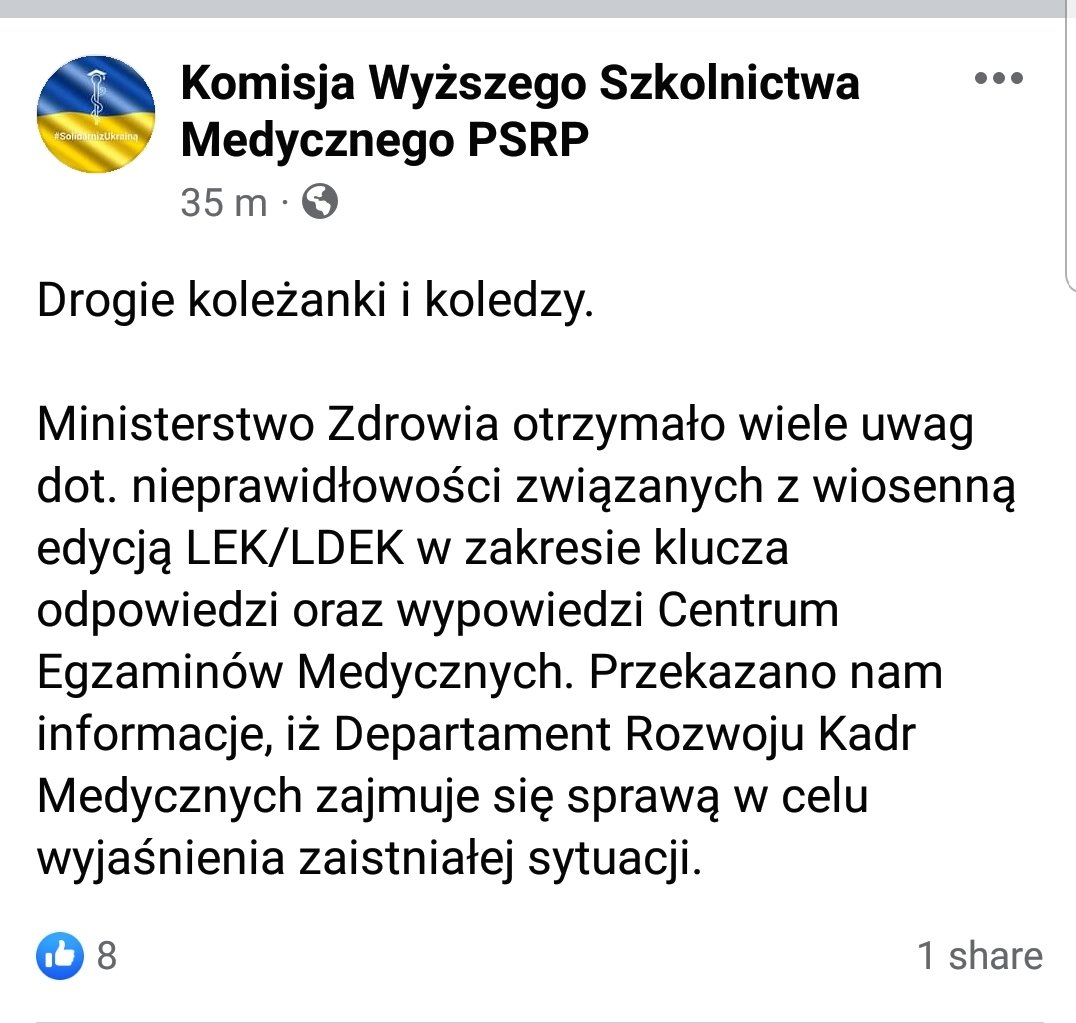 Lekarski Egzamin Końcowy W2022- Centrum Egzaminów Medycznych opublikowało klucz odpowiedzi do ostatniego egzaminu, w którym jest pełno błędów. Czy to jest ta nowa jakość kształcenia? @MZ_GOV_PL@a_niedzielski