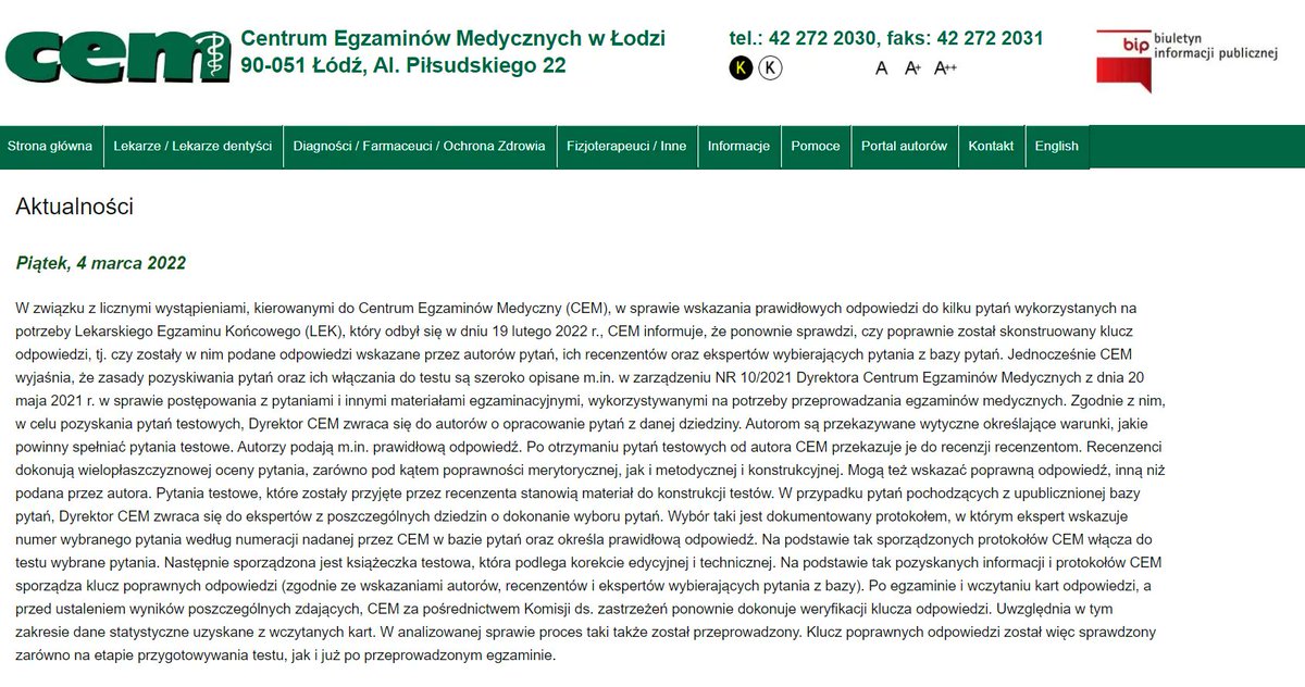 Komunikat na stronie cem.edu.pl. W skrócie - sprawdzimy klucz, ale przecież wszystko jest w porządku, mamy świetny system weryfikacji i ekspertów, którzy chcą dawać tetracyklinę 4-letniemu dziecku.