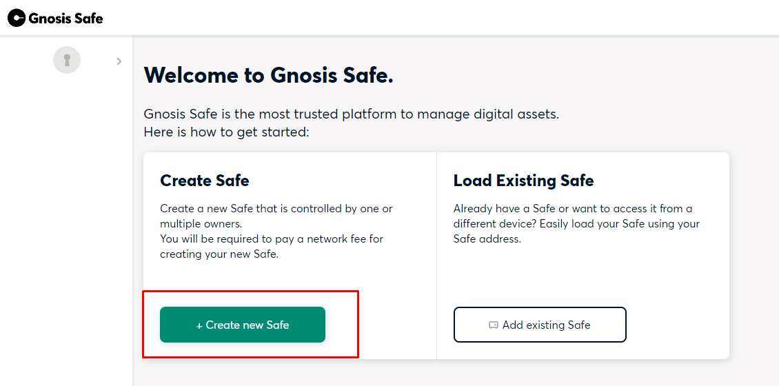 2. Create new safe, #Avalanche'da güvenli kasa (contract) veya birden fazla adres tarafından yönetilen kasayı oluştur butonuna tıklayınız.