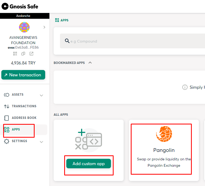 10.7 Kasa'daki varlıkları swap vb işlemleri gerçekleştirmek isterseniz @gnosisSafe sitesindeki güvenli dApp’leri kullanabilirsiniz veya yeni ekleyebilirsiniz, ancak yine de her işlem için 3 onaylayı gerekecektir belirlediğiniz kadarı yani.