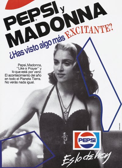 A sabiendas de la envergadura de sus aspiraciones, Madonna firmó un contrato publicitario con Pepsi, cuyo valor ascendió a 5 millones de dólares.