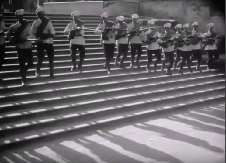 Visto il massacro, i marinai della Potëmkin decidono di sparare sulla sede dei generali con i cannoni della corazzata.