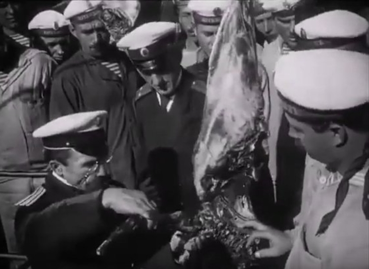 Il film inizia con l'ammutinamento dei marinai dopo che viene servito loro del cibo andato a male.