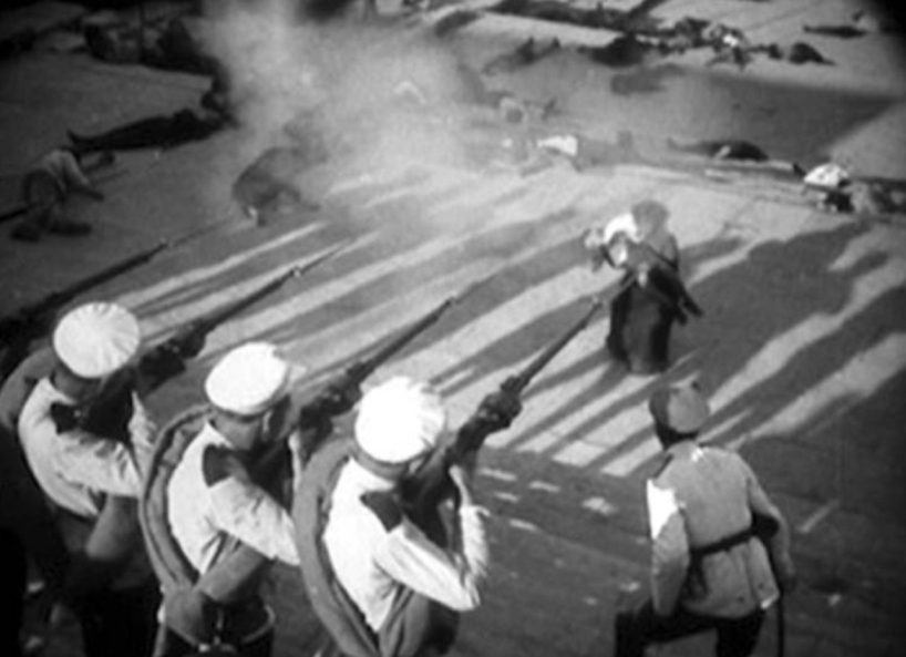 Il plotone di esecuzione è pronto. Il comandante ordina di aprire il fuoco, ma i soldati del plotone di esecuzione si rifiutano, dando il via alla rivolta.