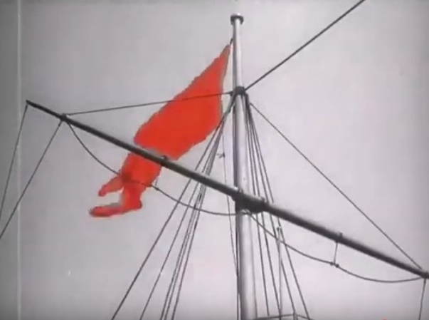 La bandiera fu colorata di rosso fotogramma per fotogramma.