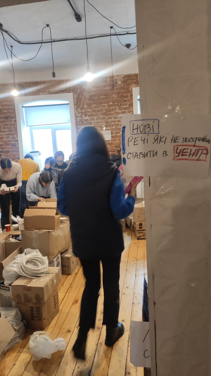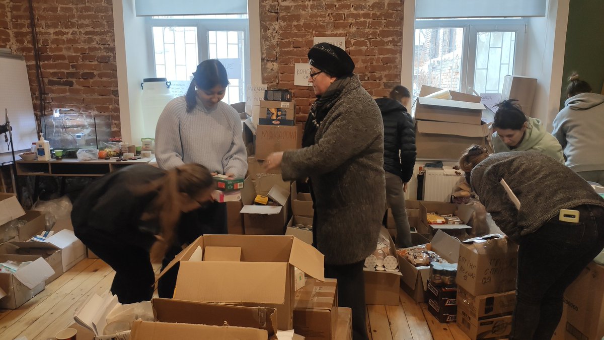 On the first day of Russian invasion, a local youth center has been spontaneously transformed into a place where locals started to bring humanitarian assistance. Young people who earlier came here for lectures or film screenings, showed up willing to volunteer
