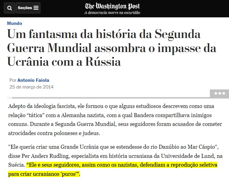 Não obstante, o golpe de 2014, que derrubou Yanukovich e consolidou a ascensão da extrema-direita do Euromaidan, abriu caminho para a glorificação de Stepan Bandera e de diversos outros colaboradores nazistas.