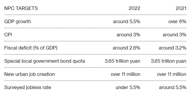 🇨🇳 #NPC Meeting Debrief (1) | The 5.5% GDP target (upper range of expectations) signals an intent to limit downward pressures from the #property slump, zero-#Covid strategy and #Ukraine war (affecting foreign demand).