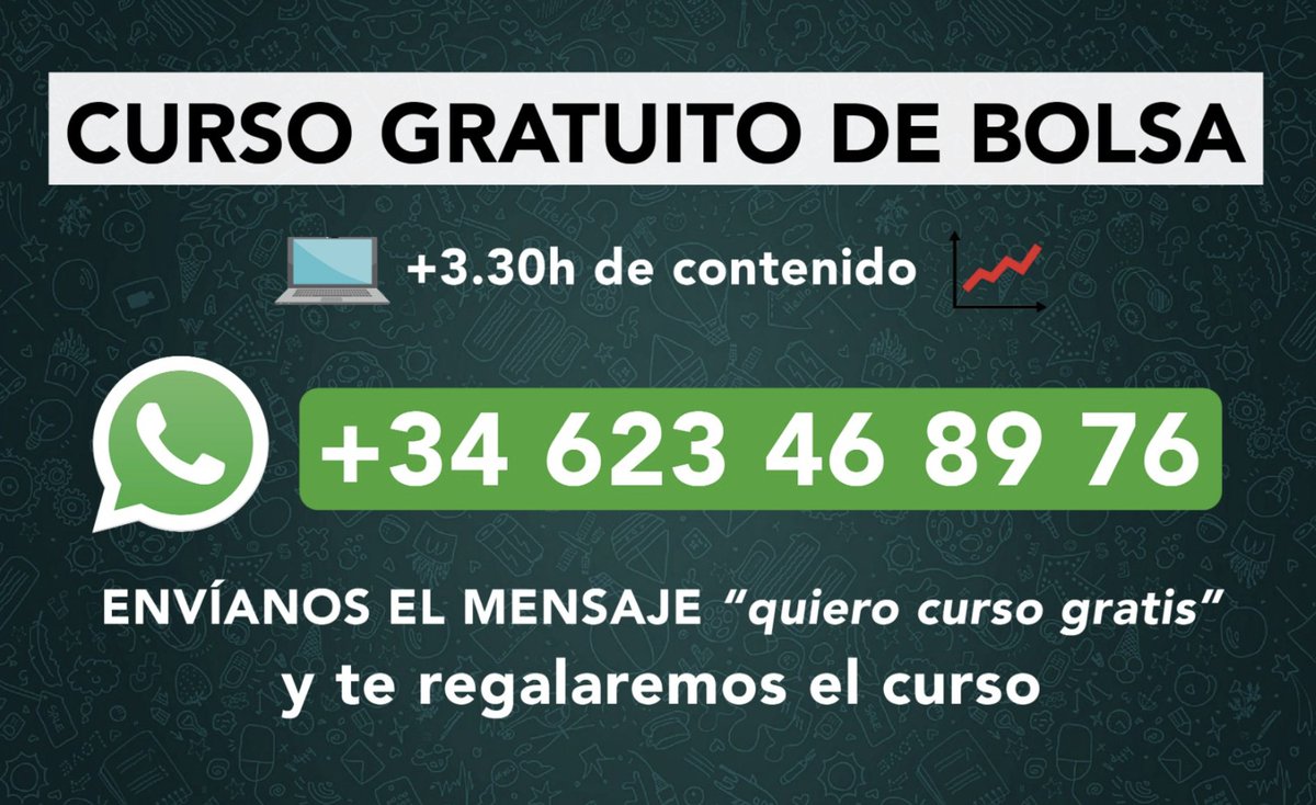 Si quiere aprender a invertir ya sabes que simplemente enviándonos un whatsapp te compartiremos un curso de bolsa gratis de mas de 3h con el que puedes aprender muchísimo.