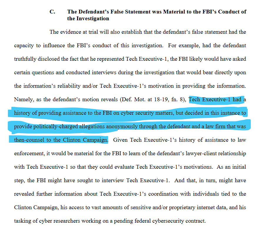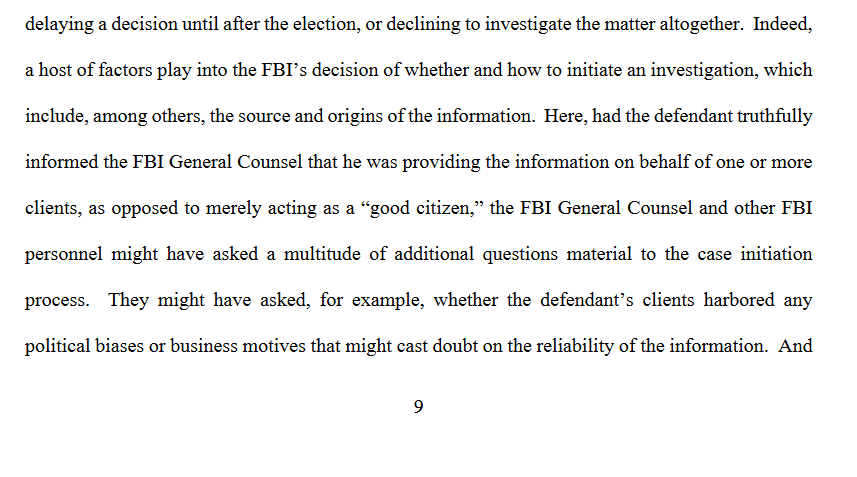 Sussmann's lies prevented the FBI from evaluating the source of information that they were receiving.