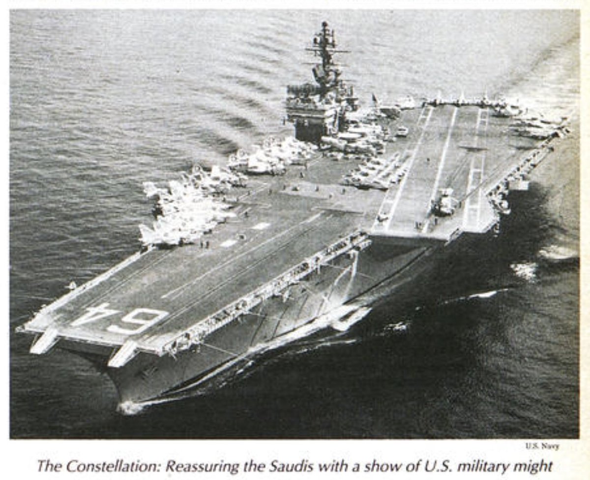 Carter was already shifting his posture. In March 1979, the State Department sent the supercarrier U.S.S. Constellation into the Gulf to reassure oil-heavy Saudi Arabia during a border war between their ally North Yemen & USSR-backed South Yemen (@newsweek, March 19, 1979):