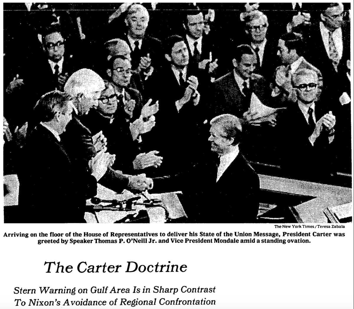 The press breathlessly covered Carter’s new delineation of American power in the Gulf. Here’s the @nytimes coverage from the next morning, Jan. 24th, 1980: