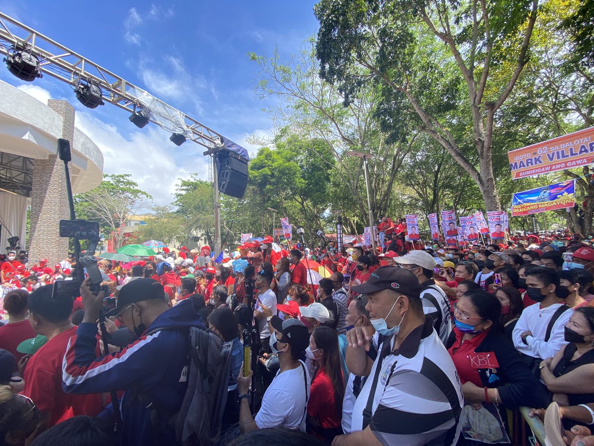 We're in Masbate for Bongbong Marcos' 2nd Bicol stop. He's claiming lead over Robredo in her own bailiwick, citing surveys. In that aspect, this leg has something to prove. Sorsogon had a so-so crowd, let's see turnout here where Marcos is endorsed by Gov Tony Kho @rapplerdotcom