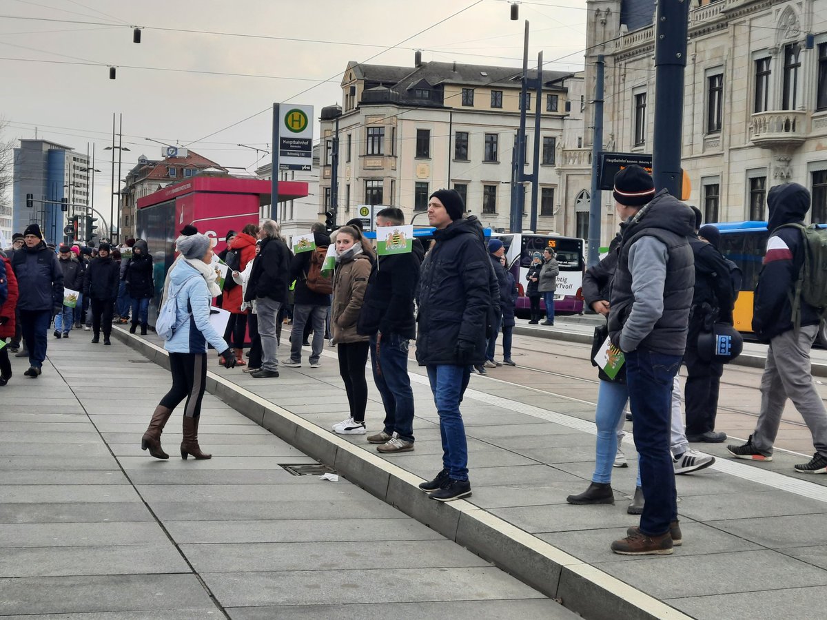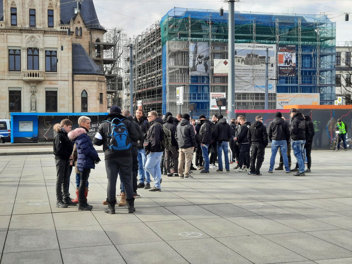 15:48 Zur Zeit ist die Nazi-Demonstration noch auf der Reitbahnstraße. Es sind mehrere hundert Teilnehmer*innen. Genaue Teilnehmer*innenzahl ist zur Zeit schwer einzuschätzen