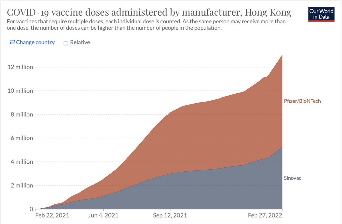 There is also a major difference in the vaccines used. Hong Kong used a high proportion of Sinovac, which has been shown to be less protective vs Omicron /4