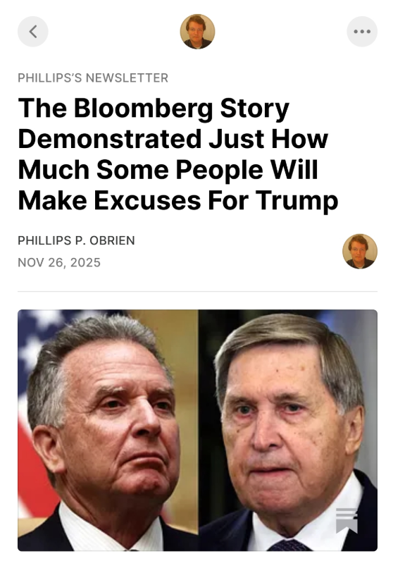 Hi All, Just sent out this free piece. The controversial Bloomberg piece is the perfect example of why we must stop making excuses for Trump. Trump has reconfirmed that Witkoff was doing what he wanted and has reconfirmed that Witkoff is soon off to Moscow to represent the USA
