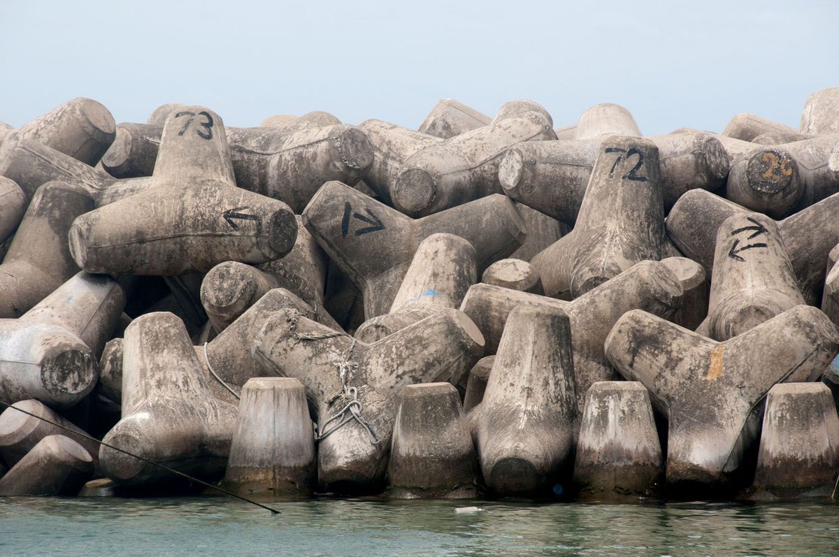 These are called concrete tetrapods. They are generally used for coastal erosion and wave protection, breakwaters and other coastal infrastructure, when placed on shorelines they interlock, forming a very durable and porous barrier that break up waves