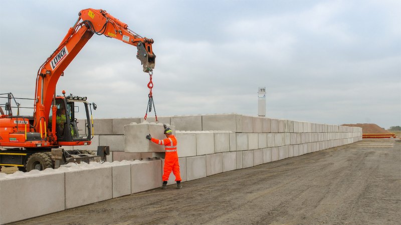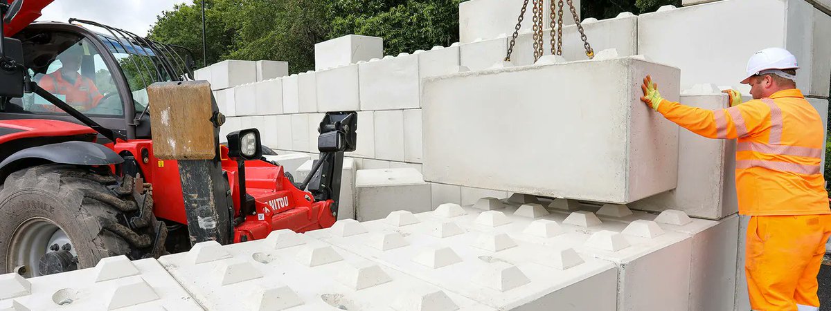 The benefit of these over the really big concrete blocks is they can be lifted by much more common agricultural and construction plant.