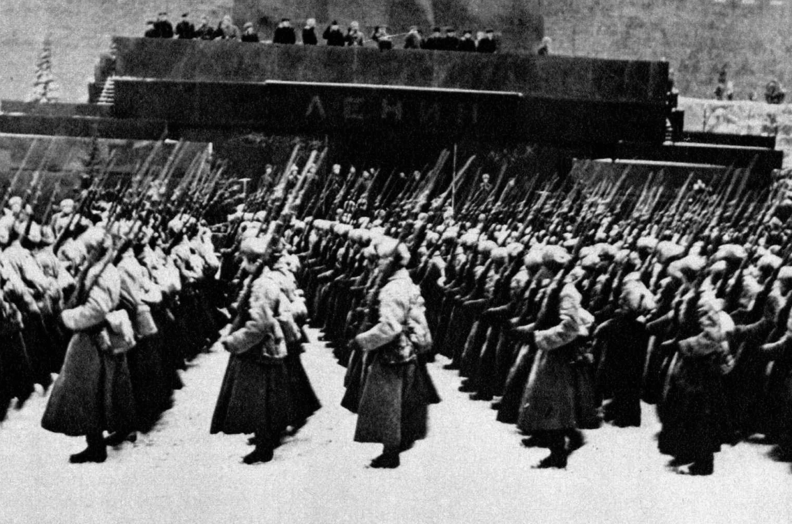 Sotto il controllo dell’aviazione i soldati russi sfilarono in parata per le vie della città.