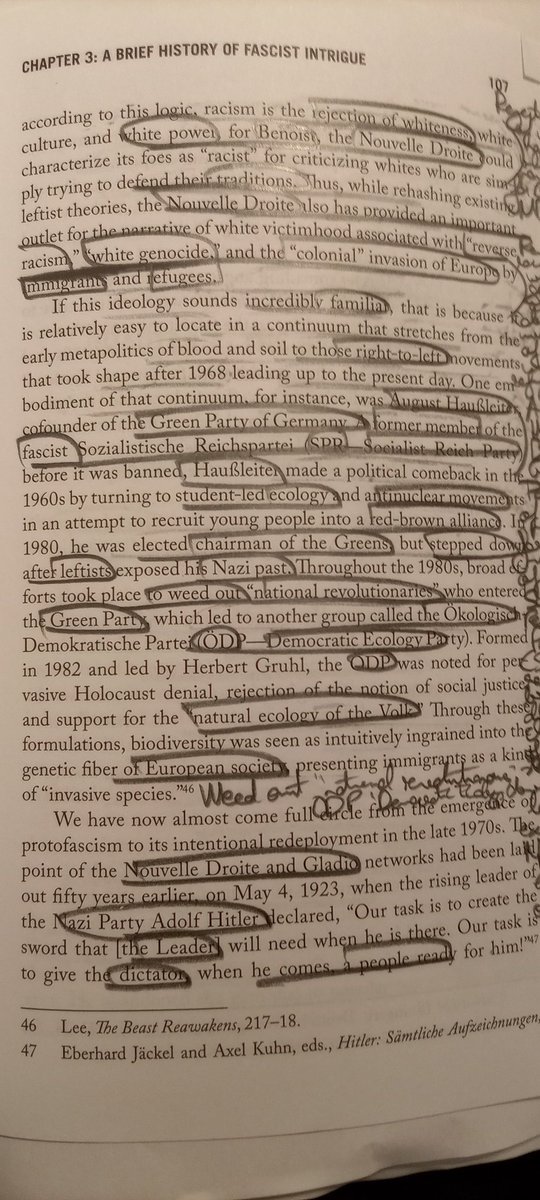 ÖDP bajo la idea de la "ecología natural del Volk" y el negacionismo del Holocausto. Con esto acabo la segunda parte del hilo, a las puertas del capítulo 4 (llevo algo menos de un tercio). He tratado desde los NS hasta la aparición de la ND de Benoist. Mañana hago otro hilo.