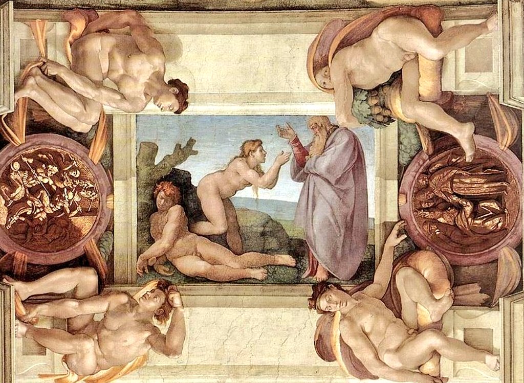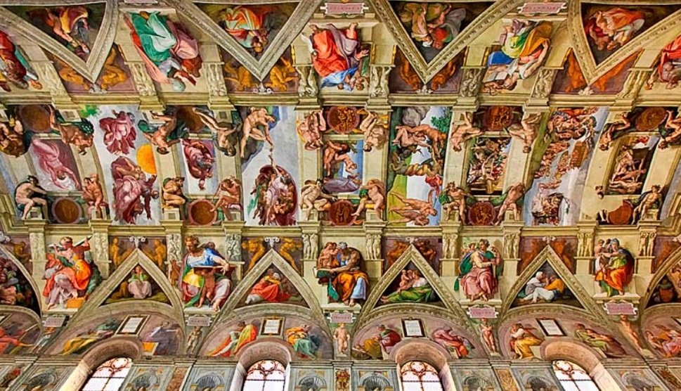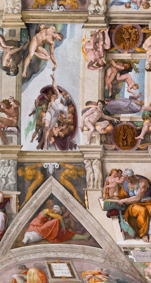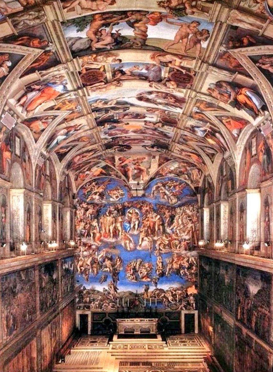 Lo que no sabía Miguel Ángel es que en cuatro años (1508-1512) pintaría tumbado sobre un andamio él solo una de las obras más importantes y asombrosas del Renacimiento y añado, de la Historia del Arte.