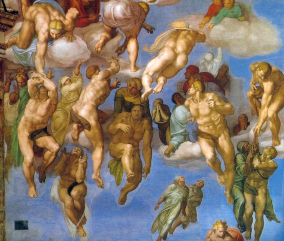 Miguel Ángel pintó a todos los santos desnudos; Biagio De Cesana, se escandalizó y acudió junto a otros cardenales a quejarse al Papa quien pidió a Miguel Ángel que los cubriese, a lo que respondió: "Santidad, los Santos no tienen sastre".