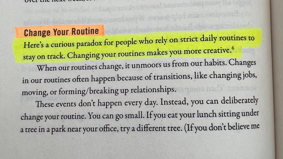"Here's a curious paradox for people who rely on strict daily routines to stay on track. Changing your routines makes you more creative."