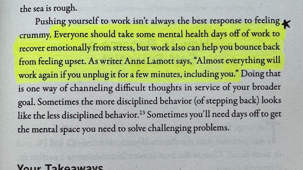 "Everyone should take some mental health days off of work to recover emotionally from stress...As writer Anne Lamott says, "Almost everything will work again if you unplug it for a few minutes, including you."