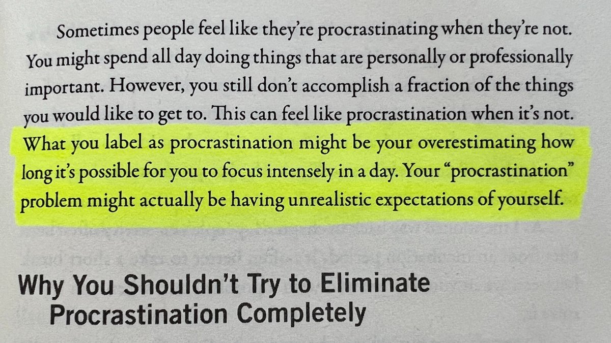 "What you label as procrastination might be your overestimating how long it's possible for you to focus intensely in a day. Your 'procrastination' problem might actually be having unrealistic expectations of yourself."