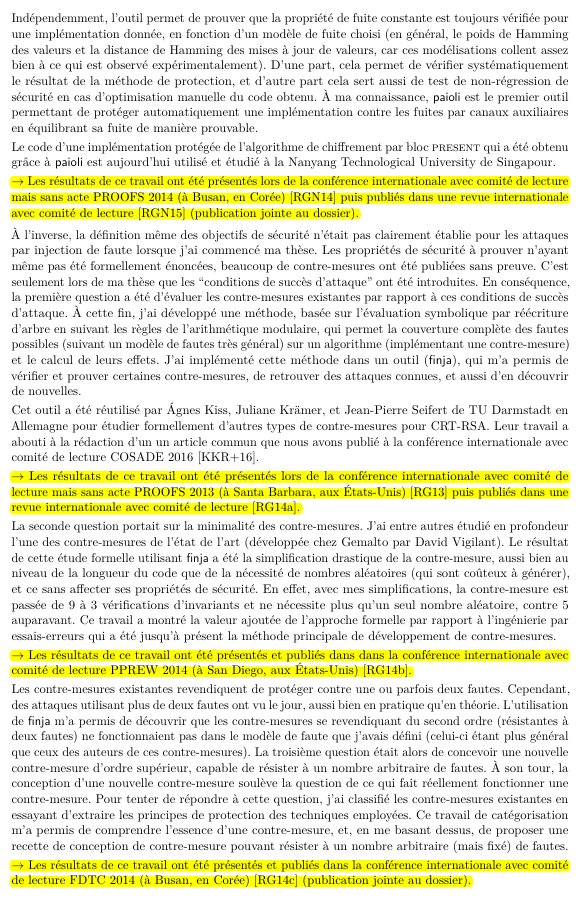 Là où vous décrivez vos travaux, mettez des références explicites à vos productions.