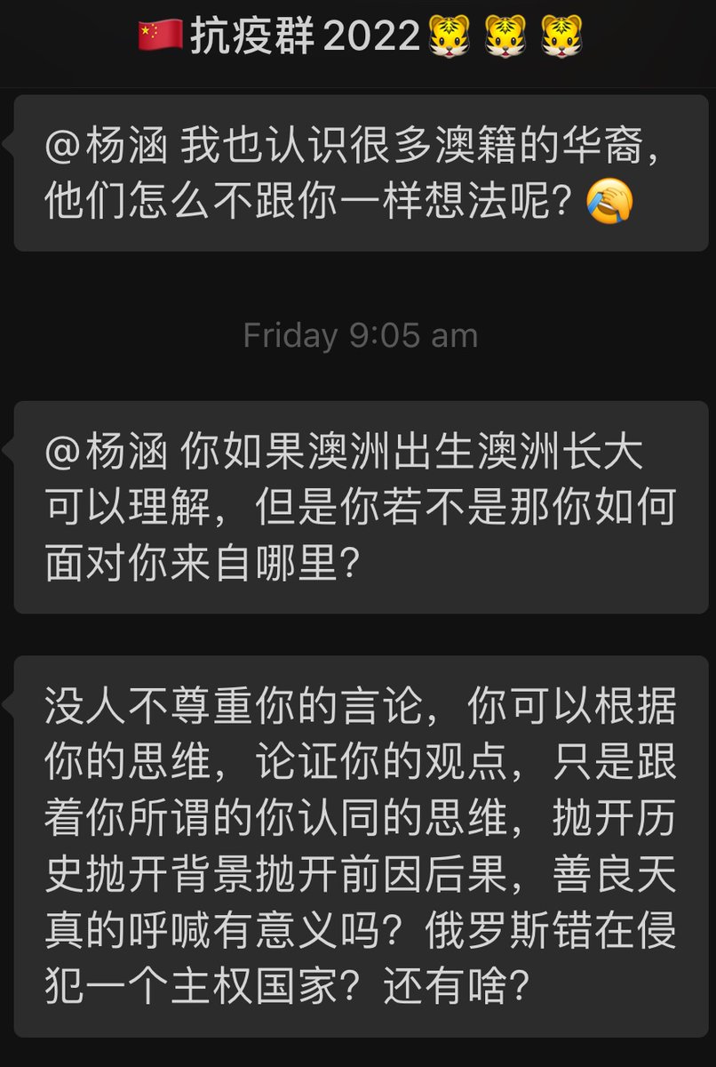 Last week I was invited into a WeChat group mainly for Chinese migrants living in Australia, giving me a unique look at how they view the Ukraine war. The group logo has a Chinese national flag, so unsurprisingly their views are very pro-China, pro- Communist Party.