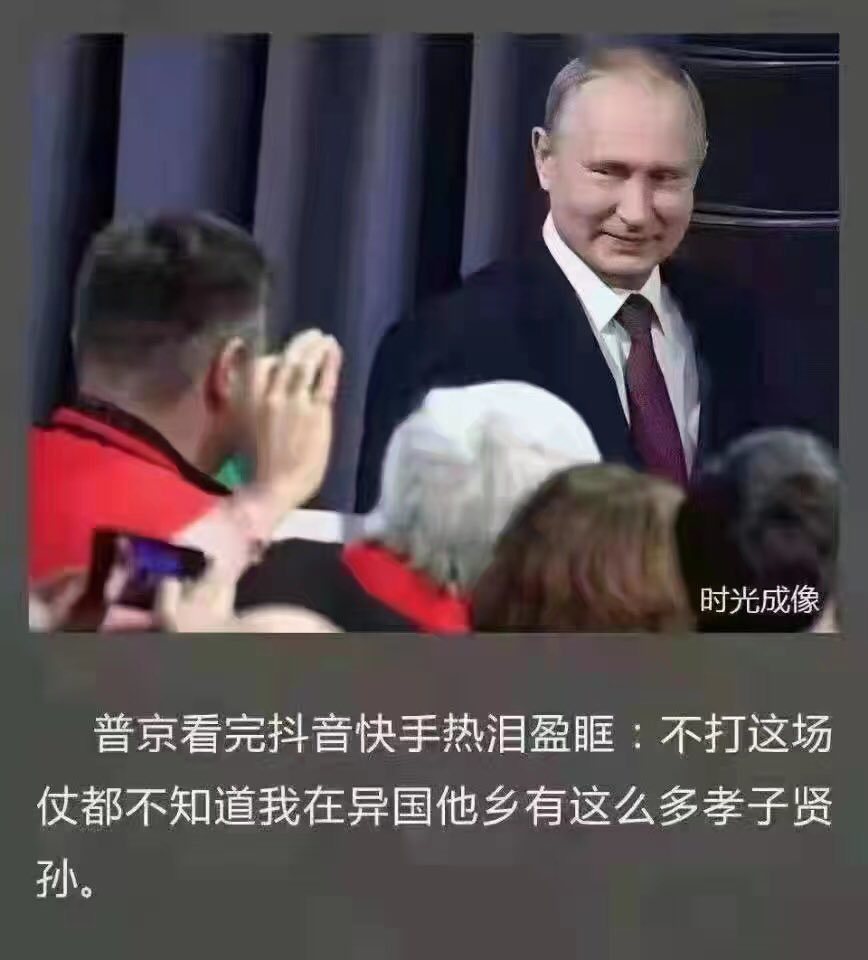 A rare treat in this group! Some one posts a meme mocking the enthusiastic support Putin gets from the Chinese: “Putin is brought to tears. Without the war, he wouldn’t even know he had so many loyal sons and grandsons on TikTok China”