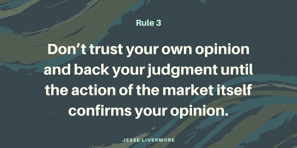 "Don’t trust your own opinion and back your judgment until the action of the market itself confirms your opinion."