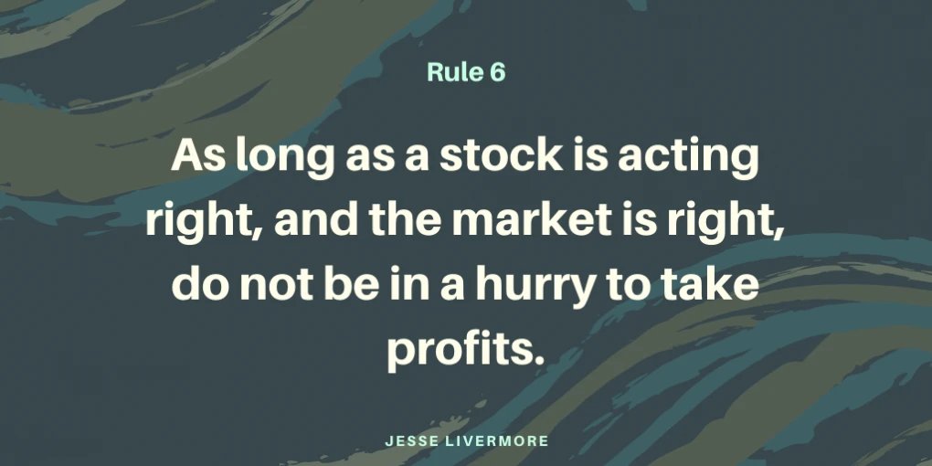 "As long as a stock is acting right, and the market is right, do not be in a hurry to take profits."
