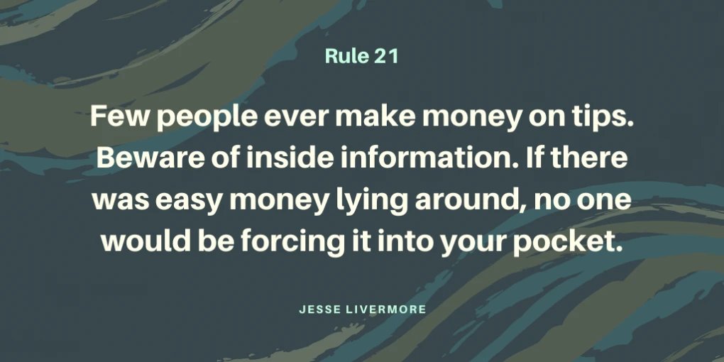 "Few people ever make money on tips. Beware of inside information. If there was easy money lying around, no one would be forcing it into your pocket."