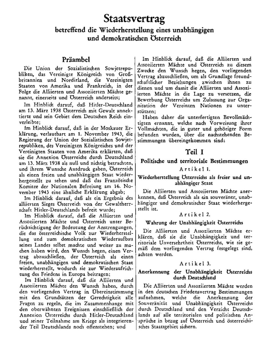 Die Neutralität steht übr. genau deswegen nicht im Staatsvertrag, um die - politisch wichtige - Fiktion, sie sei „aus freien Stücken“ gewählt, aufrechtzuerhalten.