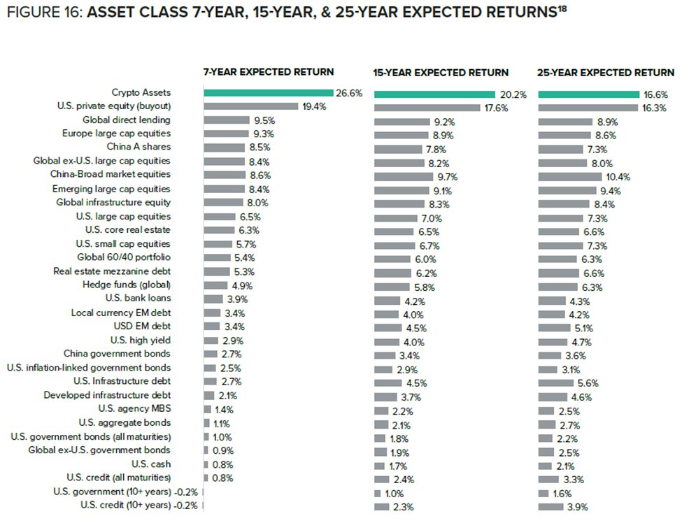 16/ Based on our current Grayscale Long Term Crypto Market Assumptions (LTCMAs), we believe the asset category can offer higher expected returns than nearly all other asset classes over the next few decades before coming in line with other alternatives.