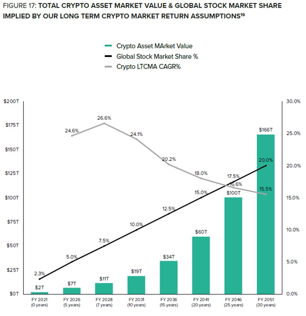 18/ Our LTCMAs are based on the view that the asset category can continue to disrupt the tech sector by gaining a greater share of global stock market value over the next 30 years as a rate that conservatively approximating the internet’s share growth from 1996 to 2021.