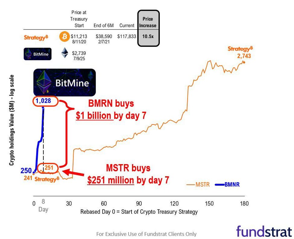 Here’s a chart of BMNR’s NAV vs. @MicroStrategy’s since launch from ~2.5 weeks ago - and we think BMNR’s NAV may be closer $2.7B by now.