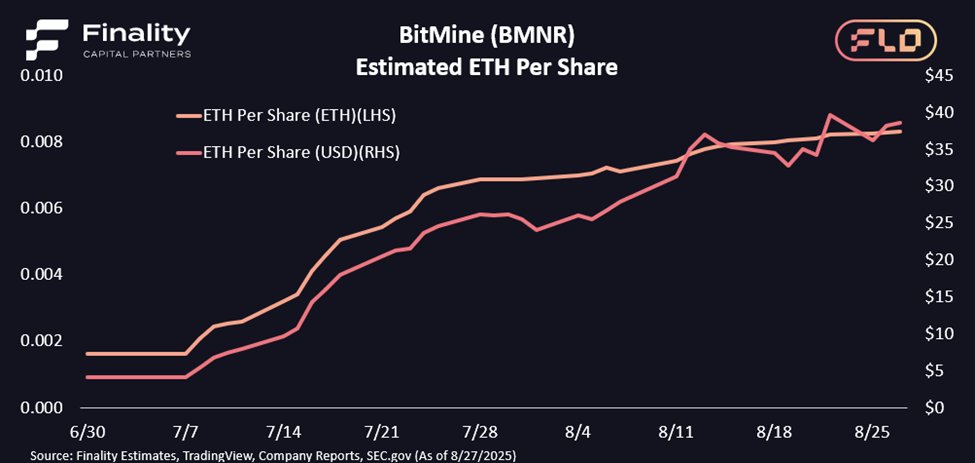 3/ Since then, we estimate that $BMNR has meaningfully grown it’s ETH per share by ~50% from $26 to $39 in USD terms or over ~20% in ETH terms from 0.0069 to 0083 ETH per share