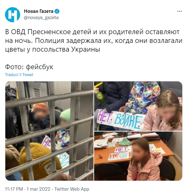 Novaya Gazeta, uno dei pochi giornali indipendenti russi, ha pubblicato le foto di alcuni bambini in una stazione di polizia a Mosca.