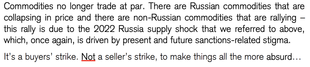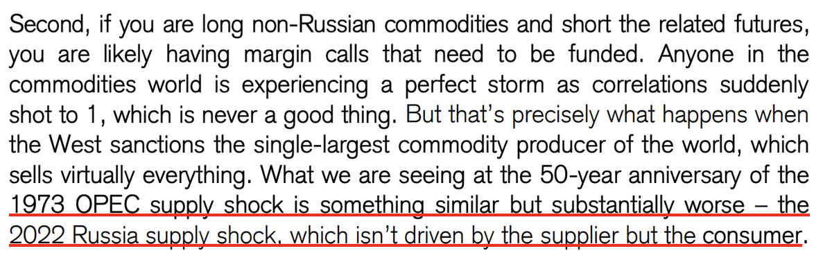 Commodity price spikes are being driven by margin calls on traders who need to close short futures position. But when that's over, they are left holding the bag on Russian commods for physical delivery (that can no longer be delivered)