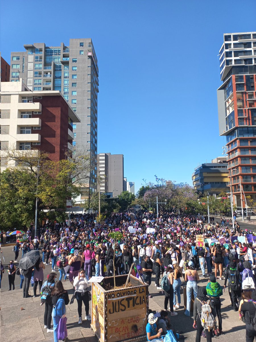 Hoy estoy en Guadalajara y acompaño la marcha del #8M. El significado de las marcha acá es sobre las mujeres que desaparecieron y las madres que buscan a los desaparecidos.