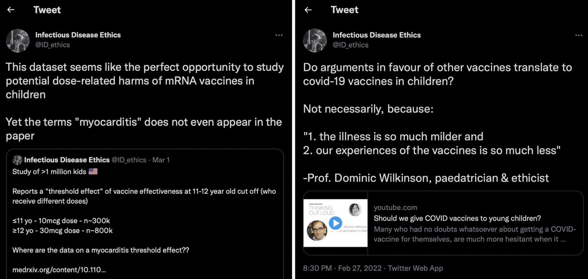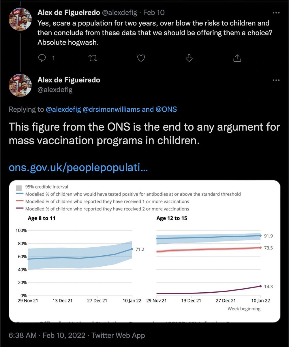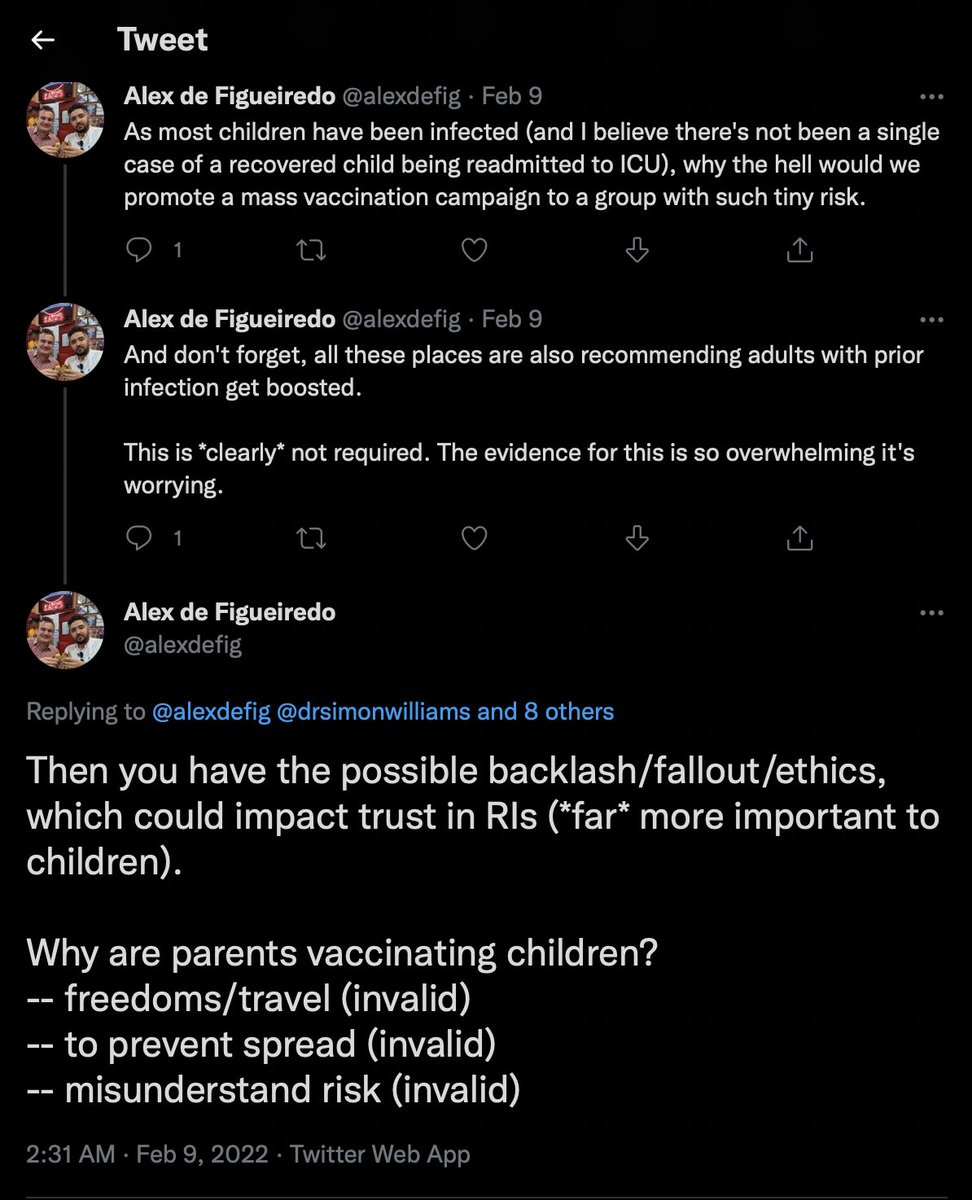 - Anti-vaccination in children, thinks fear of risks of covid in kids = ‘invalid’