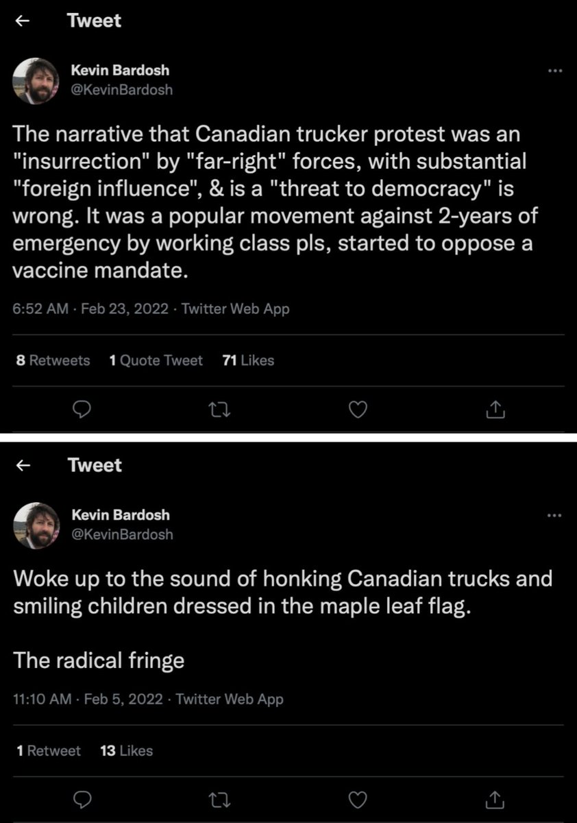 - Pro-trucker convoy (thinks it is a wholesome revolutionary movement that definitely does not promote white supremacists or Nazi flags)