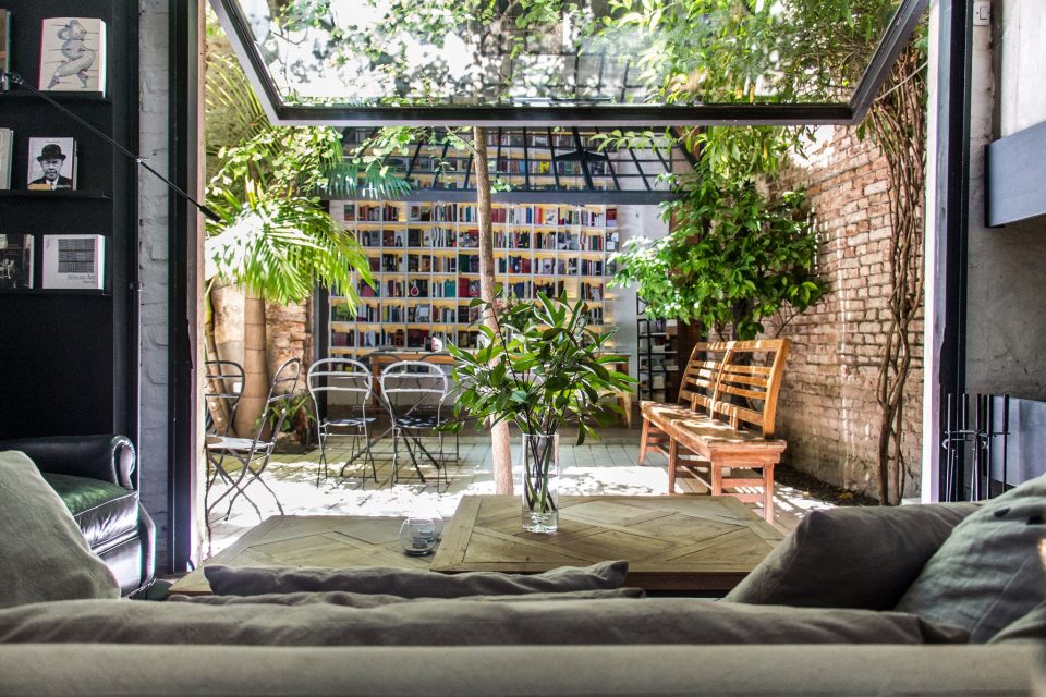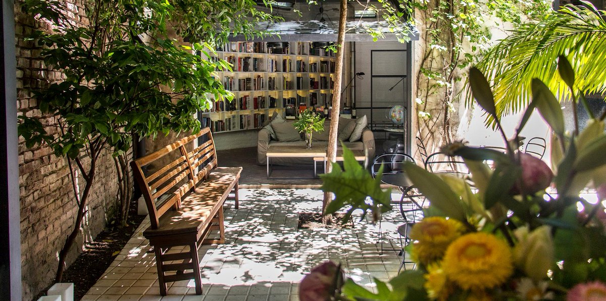 El patio interior es ideal para tomar un café y leer, un oasis dentro de Palermo.