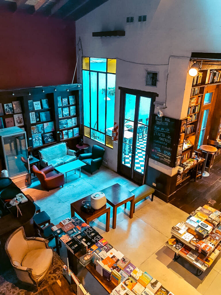 Está en una casona con patio y terraza sin vidriera a la calle y cuenta con una amplia selección de libros contemporáneos, catalogados por países regiones y temáticas.