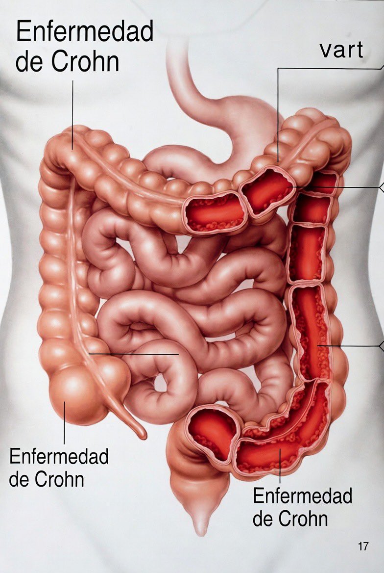 La enfermedad de Crohn es una enfermedad inflamatoria intestinal que puede afectar a cualquier parte del tubo digestivo, desde la boca hasta el ano. Se suele detectar al final del intestino delgado y al principio del intestino grueso.